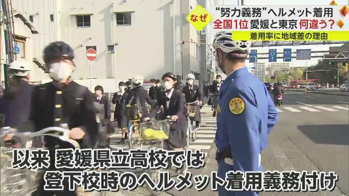 ヘルメットを着用した女性「(ヘルメット着用率が全国1位について)愛媛県人、なんか真面目というか、キャッチフレーズじゃないけど、『努力義務』ってなったときの使命感が(すごい)」
