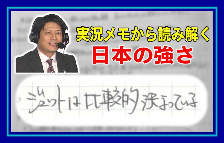 では、そんな相手に日本はどう戦っていけばいいのか。倉田アナの実況メモを見ると、「ジェットは比較的決まっている」と書かれています。