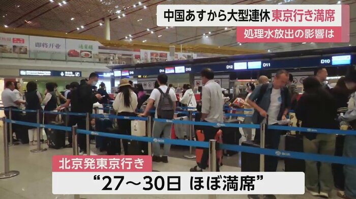 福島第一原発の処理水放出の影響が懸念される中、北京発東京行きの便はほぼ満席になっている。
