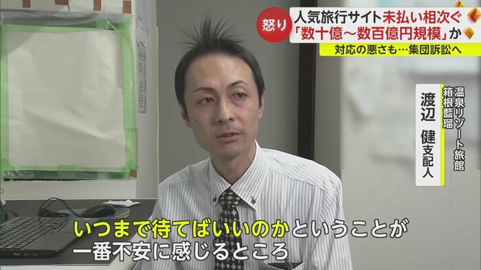 「箱根藍瑠」渡辺健支配人は、「いつまで待てばいいのかということが一番不安に感じるところ。ここまでまとまった(支払いの)遅れは、今回初めてかなと思います」と話した。