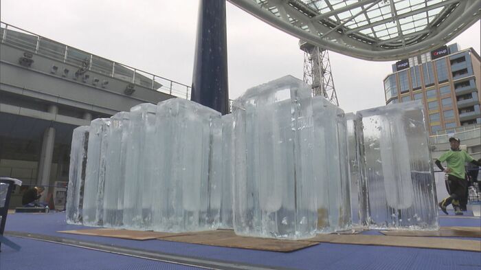 名古屋市東区の「オアシス21」で16日、ホテルや飲食店の料理人が氷の彫刻の技術を競うコンテストが行われた。