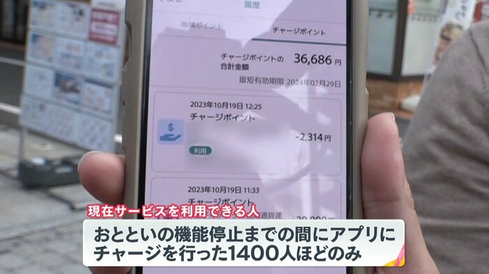 これまでに、約5万人が、アプリをダウンロードしましたが、現在、サービスを利用できている人は機能が停止するまでにチャージを行った1400人ほどのみだといいます。