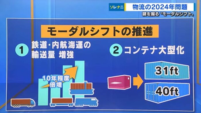政府は10月、モーダルシフトを進める緊急対策として、鉄道や船舶の輸送量を今後10年で倍増させる方針を示した。また、コンテナの大型化も推進する方針を出している。
