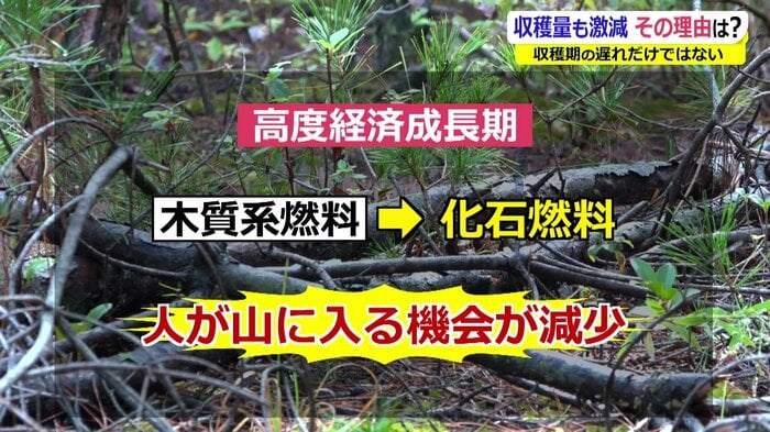 秋の味覚の王様「マツタケ」の収穫量が激減している。福井ではピーク時の100分の1になっていて、スーパーなどに並ぶことすらなくなっている。専門家の1人は「化石燃料の増加」がマツタケ激減の背景にあると分析する。