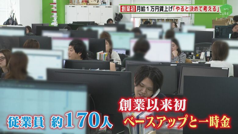 自治体向けの広報誌の発行や広告などを手がける会社「ホープ」は、従業員170人ほどに対し、2005年の創業以来初めてのベースアップと一時金の支給を決めた。
