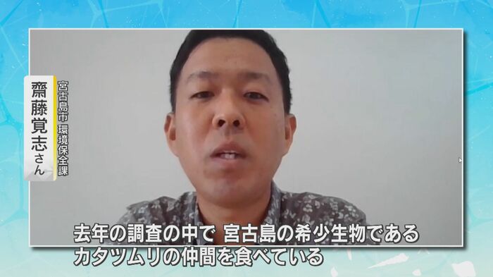 去年(2022年)の調査で、宮古島の希少生物であるカタツムリの仲間を食べていることがわかってきたので、数が増えることに関しては、私たちとしては率直に“驚異”として捉えています