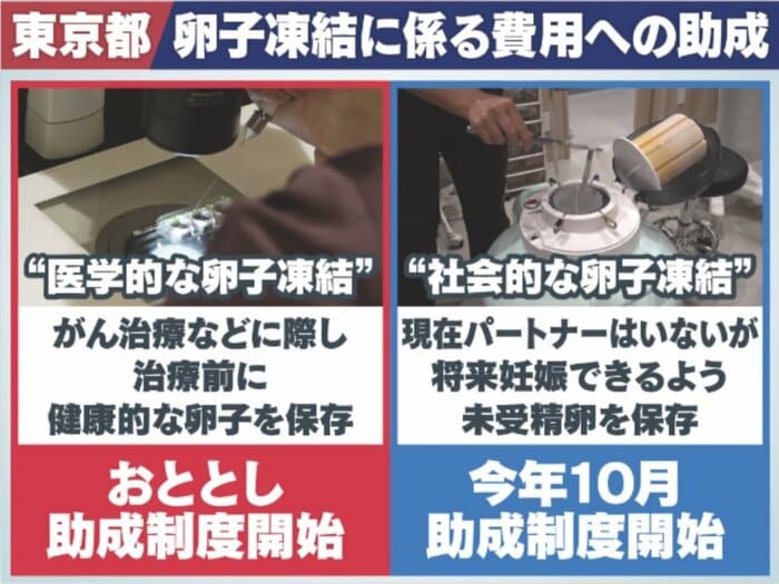 2021年に助成制度を開始した、病気などを理由とした「医学的な卵子凍結」に加えて、10月から始まった「社会的な卵子凍結」への助成制度。
