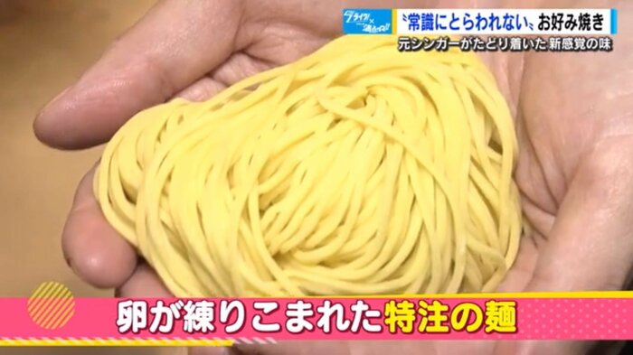 うちのお好み焼きには、全部黄色い麺を使ってます