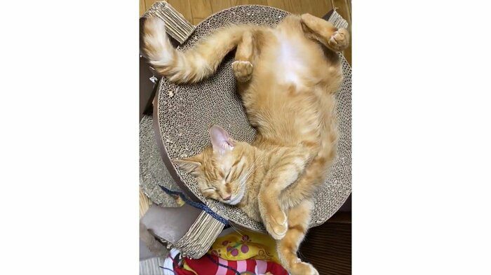 こんなコメントとともに、飼い主のつぶさん(@tsubu_0401)が投稿した動画に映っているのは、茶トラ猫のつぶちゃん(推定2歳8カ月・女の子)。