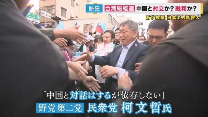 また野党第二党・民衆党の柯文哲候補は、「中国と対話はするが、依存しない」と中立的な独自路線を主張。