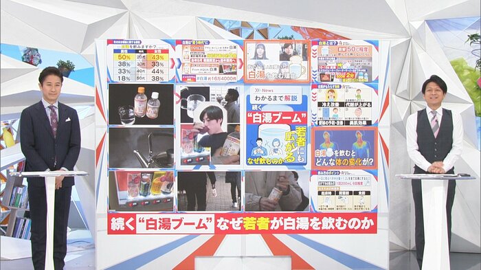 街で若い方に話を聞くと、やっぱり体が冷えるので、朝飲むよっていうこともあるんですけれども、中にはですね、コーヒー、お茶、カフェインがちょっと苦手、こういったことから白湯を選んで、少し体を温めようと、こういう方も、実際多かったんですよね。