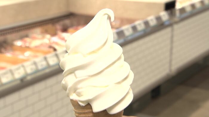 佐藤水産の夏の名物である「塩ソフトクリーム」を大通公園店では年中食べることができる。