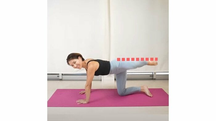 四つん這いの姿勢で脚を横に上げ、お尻の横の筋肉を刺激するトレーニング。少しハードだが、その分効果も期待できる。
