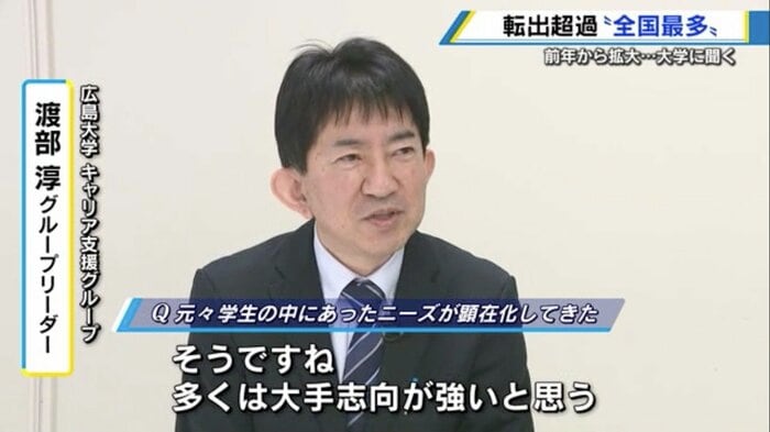 広島県内に就職したいという学生が多い。あれだけ県内がいいという学生がいる中で、転出が多いのはなぜだろうと不思議なところではあります