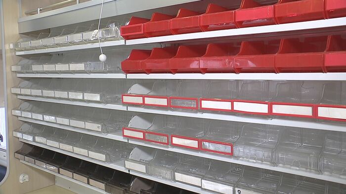 車内には最大500種類ほどの薬が置けるスペースのほか給水設備や薬を小分けにする機械などが備えられていて、薬局と同じように薬を調合して処方することができる。
