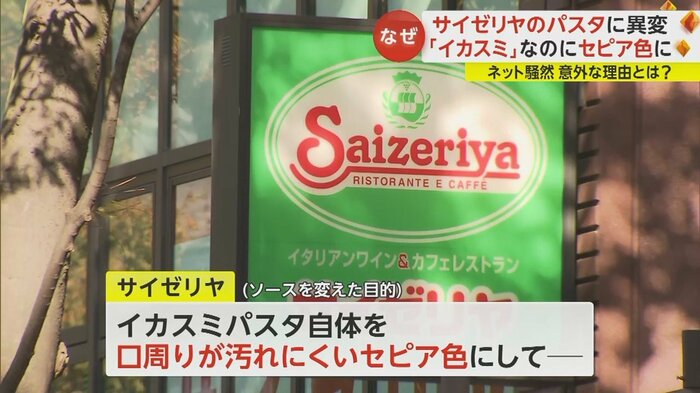 サイゼリヤは、ソースを変えた目的について、イカスミパスタ自体を口周りが汚れにくいセピア色にして、より食べやすくすること、利用シーンを増やすことだとしている。