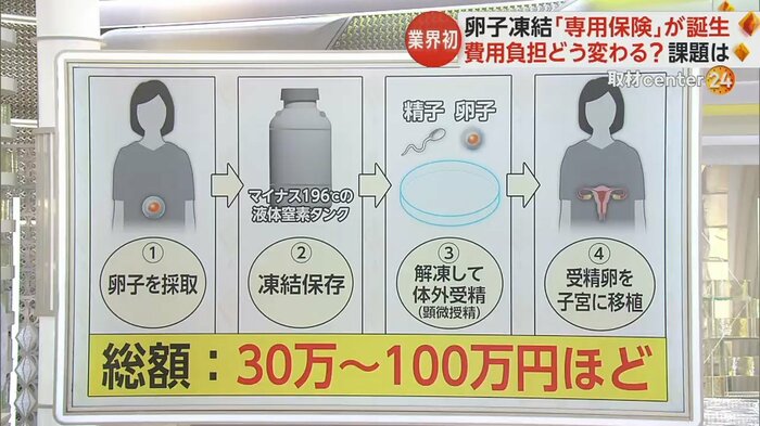 国内の損害保険会社で凍結卵子に関わる商品の販売は初めてで、経済的理由で卵子凍結をためらう女性を後押ししたいとしている。