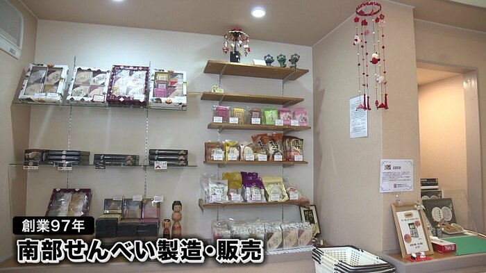 原料はナンブコムギにこだわり、噛めば噛むほど甘みが広がる南部せんべいの製造・販売を続けてきた。