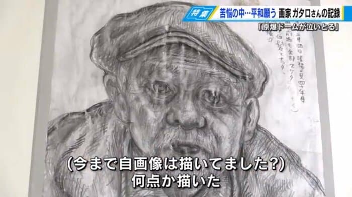 ガタロさんは約40年、清掃の仕事をしながら絵を描いてきた。30代のころ、365日、毎日原爆ドームへ通い描いた。