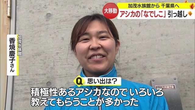 鴨川シーワールドがある千葉・鴨川市までは、なでしこに負担がかからないよう休憩をはさみながら、約12時間をかけて移動する。まだ日程は決まっていないが、なでしこが新しい環境に慣れたあとで展示される予定。