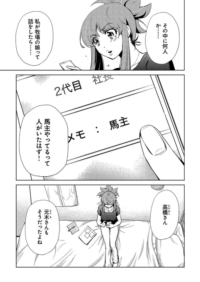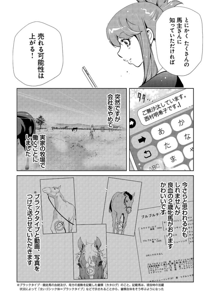 前職の伝手を辿って馬は売れるのか…?売れないと売却費が…では牧場が馬主になったとしたら? マンガ『会社をやめて馬主やります! アキコノユメヲ』(第4話・前編) 信田朋嗣 栗元健太郎/咲 2024年3月18日 月曜 午前7:00 #1 … #6 #7 #8 … #80 次ページ思い出したのはあの人…! 1 2 3 4 5 #1 … #6 #7 #8 … #80 信田朋嗣,栗元健太郎/咲の他の記事 2歳馬の身体にとって実は厳しい調教と遠征…その判断の重さに馬主が耐えるために必要な“声” エンタメ 2024年11月25日 2歳牝馬で全治6ヶ月の怪我…馬主が考える“パンク”した馬の転売・放牧・引退、そして殺処分という4つの選択肢 エンタメ 2024年11月25日 2歳牝馬にとって度重なる遠征は体の負担が大きい…それでも狙いたいグランダム・ジャパンで勝利する価値 エンタメ 2024年11月18日 重賞を勝利した馬が次に狙うレースの意味。2歳牝馬がグランダム・ジャパンを狙って見える景色とは エンタメ 2024年11月18日 一覧ページへ