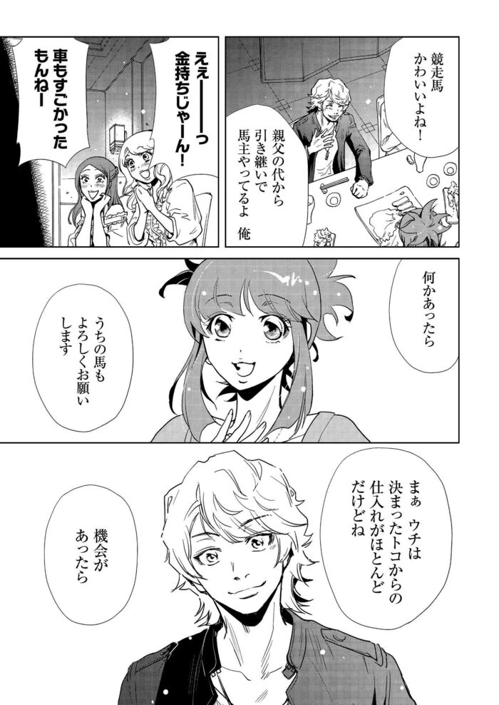 前職の伝手を辿って馬は売れるのか…?売れないと売却費が…では牧場が馬主になったとしたら? マンガ『会社をやめて馬主やります! アキコノユメヲ』(第4話・前編) 信田朋嗣 栗元健太郎/咲 2024年3月18日 月曜 午前7:00 #1 … #6 #7 #8 … #80 第1話前編はこちらから! 第2話前編はこちらから! 第2話後編はこちらから! 次回、第5話は3月25日(月)に公開予定! 一気読みはこちらから! (https://manga.fod.fujitv.co.jp/books/528100/BT000052810000100101/) 『会社をやめて馬主やります! アキコノユメヲ』(FOD) 信田朋嗣 栗元健太郎/咲 若槻咲美=栗元咲=伊臣麿(漫画家・イラストレーター・各種デザイナー)と栗元健太郎の共同名義。「栗元健太郎/咲」名では咲こと若槻咲美がキャラクター含め主な作画を担い、栗元健太郎が作画協力・一部構成。 主な著作『特区八犬士』は原作・構成、綾峰欄人先生『足の裏のイーリス』『会社をやめて馬主やります!』『新・必殺闇同心』は原作有 1 2 3 4 5 #1 … #6 #7 #8 … #80 信田朋嗣,栗元健太郎/咲の他の記事 2歳馬の身体にとって実は厳しい調教と遠征…その判断の重さに馬主が耐えるために必要な“声” エンタメ 2024年11月25日 2歳牝馬で全治6ヶ月の怪我…馬主が考える“パンク”した馬の転売・放牧・引退、そして殺処分という4つの選択肢 エンタメ 2024年11月25日 2歳牝馬にとって度重なる遠征は体の負担が大きい…それでも狙いたいグランダム・ジャパンで勝利する価値 エンタメ 2024年11月18日 重賞を勝利した馬が次に狙うレースの意味。2歳牝馬がグランダム・ジャパンを狙って見える景色とは エンタメ 2024年11月18日 一覧ページへ
