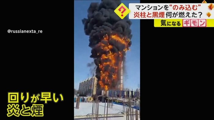 ロシア・トゥベリ州で、建設中のマンションで火災が発生した。火災の様子を撮影した映像には、爆発音が鳴り響く様子も映し出されていた。断熱材とアスファルトの燃焼により、巨大な火柱と黒煙が上がるも、けが人はなかった。