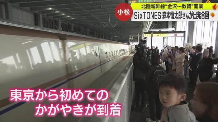 小松市出身の東京からの乗客は「(切符はすぐ買えた? )頑張って取りました!小松が実家なので帰省です。小さい時から東京までつながる新幹線が将来できるんだよって言われて育ったので、非常に感慨深い」と話した。