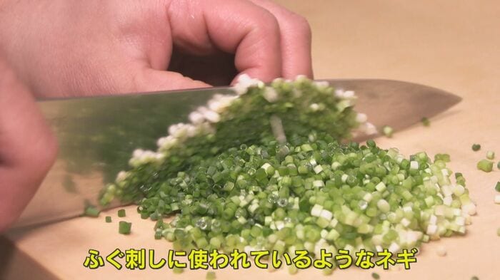 山口県産の「安岡ネギ」というネギを使っています。このネギは、特にフグ刺しとかに使われているようなネギです。