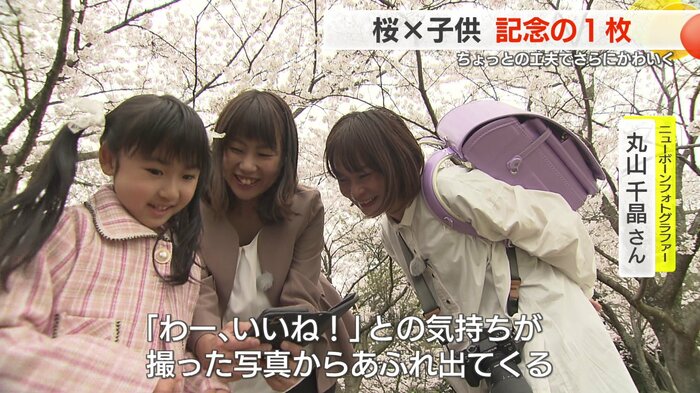 母・郁未さんがスマートフォンで撮影に挑戦!満開の桜と共に、娘の晴れ姿をスマートフォンに残すことにした。枝が見えやすい桜はちょっと難易度が高いと話す丸山さん。ポイントは「立ち位置と高さ」だという。