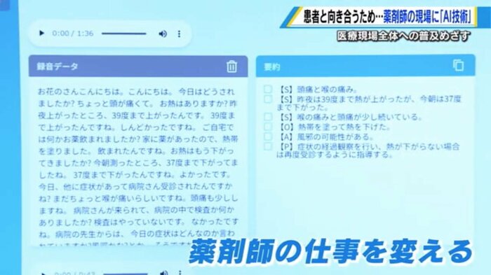 薬剤師と患者の会話を音声確認AIと生成AIにかけ、薬の履歴を自動的に作成する、「DX化」の取り組みが始まっている。