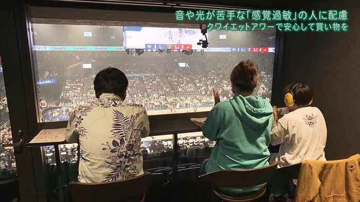「センサリールーム」は音や光の刺激を少なくする造りとなっていて、これまで会場に足を運ぶことができなかった感覚過敏のある人たちも、目の前のキングスに大きな声援を送ることができた。