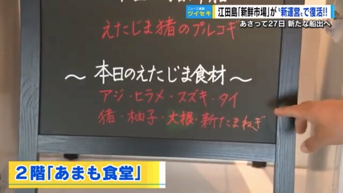 水産物と農産物のマーケット兼レストラン「えだじま新鮮市場あまも」のオープンは27日。