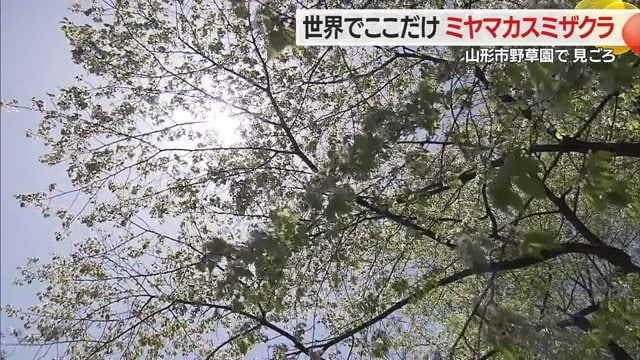 例年、咲き始めや終わりがなかなか見えない中、ミヤマカスミザクラが連休中に見ごろを迎えたとのことで、「ぜひ多くの方に足を運んでほしい」と山形市野草園・片桐遥都さんは話す。