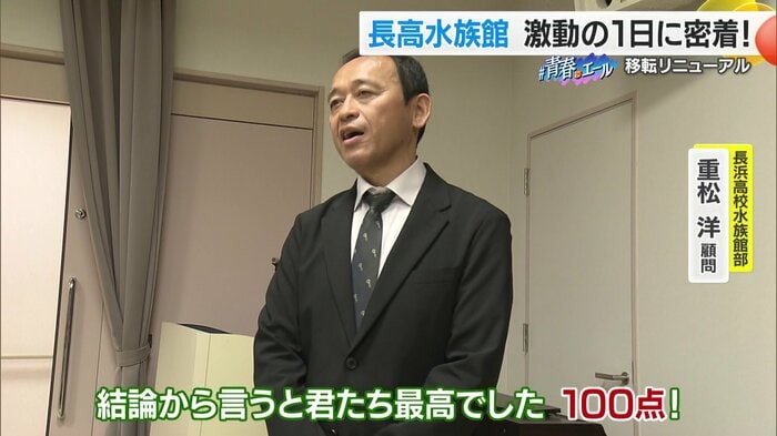 水族館部の顧問・重松洋先生は「結論から言うと、君たち最高でした。100点!拍手!」と生徒たちを激励した。