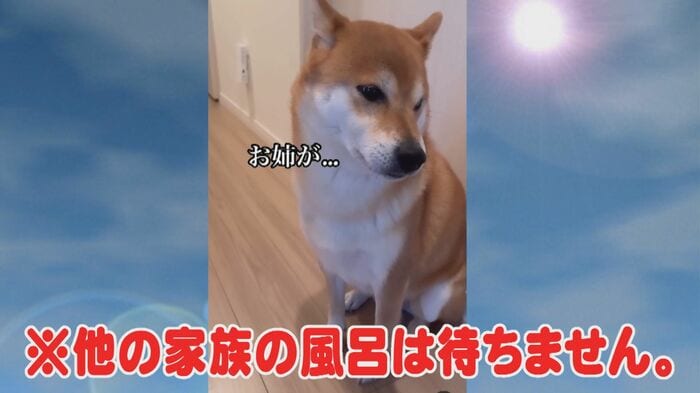 飼い主の家族がお風呂から出てくるのを待っている柴犬の様子が可愛いと、SNSで評判になりました。
