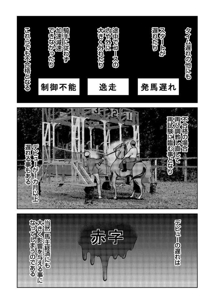 2歳馬デビュー前に行われる“能力検査”。地方競馬で“アキコノユメヲ”が挑戦するレースの意味 マンガ『会社をやめて馬主やります! アキコノユメヲ』(第13話・前編) 信田朋嗣 栗元健太郎/咲 2024年5月20日 月曜 午前7:00 #1 … #24 #25 #26 … #80 次ページアキコノユメヲはどうなる!? 1 2 3 4 5 #1 … #24 #25 #26 … #80 信田朋嗣,栗元健太郎/咲の他の記事 2歳馬の身体にとって実は厳しい調教と遠征…その判断の重さに馬主が耐えるために必要な“声” エンタメ 2024年11月25日 2歳牝馬で全治6ヶ月の怪我…馬主が考える“パンク”した馬の転売・放牧・引退、そして殺処分という4つの選択肢 エンタメ 2024年11月25日 2歳牝馬にとって度重なる遠征は体の負担が大きい…それでも狙いたいグランダム・ジャパンで勝利する価値 エンタメ 2024年11月18日 重賞を勝利した馬が次に狙うレースの意味。2歳牝馬がグランダム・ジャパンを狙って見える景色とは エンタメ 2024年11月18日 一覧ページへ