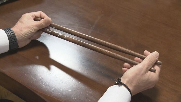 音楽隊元楽長で、40年来の付き合いがあった県警OBの丸山栄三さん(72)は、定年の記念にもらったスティックを今も大切にしている。