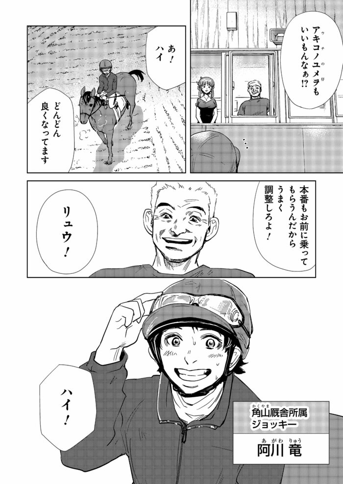 「タイムだけでレース結果は決まらない」ライバル馬”エグジビション”登場も新人ジョッキーで勝てるのか… マンガ『会社をやめて馬主やります! アキコノユメヲ』(第14話・後編) 信田朋嗣 栗元健太郎/咲 2024年5月27日 月曜 午前7:01 #1 … #27 #28 #29 … #80 次ページこのジョッキーは? 1 2 3 4 5 #1 … #27 #28 #29 … #80 信田朋嗣,栗元健太郎/咲の他の記事 2歳馬の身体にとって実は厳しい調教と遠征…その判断の重さに馬主が耐えるために必要な“声” エンタメ 2024年11月25日 2歳牝馬で全治6ヶ月の怪我…馬主が考える“パンク”した馬の転売・放牧・引退、そして殺処分という4つの選択肢 エンタメ 2024年11月25日 2歳牝馬にとって度重なる遠征は体の負担が大きい…それでも狙いたいグランダム・ジャパンで勝利する価値 エンタメ 2024年11月18日 重賞を勝利した馬が次に狙うレースの意味。2歳牝馬がグランダム・ジャパンを狙って見える景色とは エンタメ 2024年11月18日 一覧ページへ