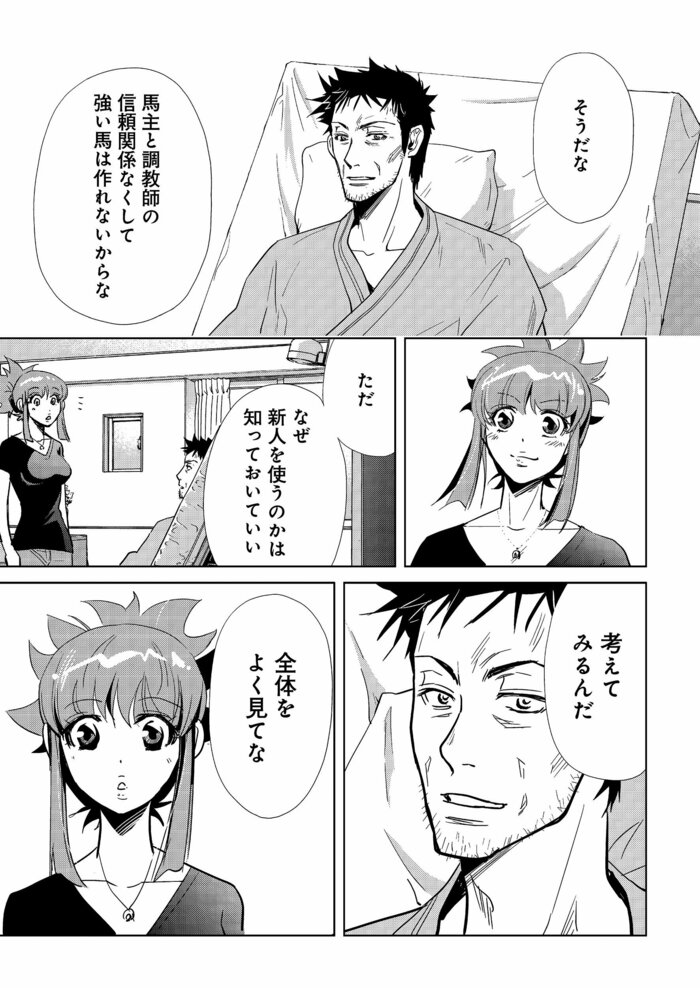 「重量1kgは1馬身に相当する」デビュー戦で新人騎手に騎乗させる理由を馬主と調教師と“馬”の視点で考える マンガ『会社をやめて馬主やります! アキコノユメヲ』(第15話・前編) 信田朋嗣 栗元健太郎/咲 2024年6月3日 月曜 午前7:00 #1 … #28 #29 #30 … #80 次ページ全体をよく見て考えると…? 1 2 3 4 5 6 #1 … #28 #29 #30 … #80 信田朋嗣,栗元健太郎/咲の他の記事 2歳馬の身体にとって実は厳しい調教と遠征…その判断の重さに馬主が耐えるために必要な“声” エンタメ 2024年11月25日 2歳牝馬で全治6ヶ月の怪我…馬主が考える“パンク”した馬の転売・放牧・引退、そして殺処分という4つの選択肢 エンタメ 2024年11月25日 2歳牝馬にとって度重なる遠征は体の負担が大きい…それでも狙いたいグランダム・ジャパンで勝利する価値 エンタメ 2024年11月18日 重賞を勝利した馬が次に狙うレースの意味。2歳牝馬がグランダム・ジャパンを狙って見える景色とは エンタメ 2024年11月18日 一覧ページへ