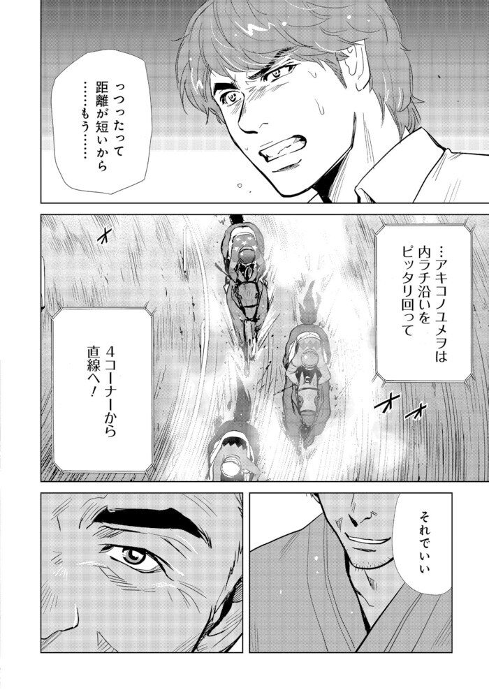 新馬戦・短距離のスタートで出遅れた馬はどう挽回するか?逃げ馬・先行馬・差し馬それぞれの選択 マンガ『会社をやめて馬主やります! アキコノユメヲ』(第17話・前編) 信田朋嗣 栗元健太郎/咲 2024年6月17日 月曜 午前7:00 #1 … #32 #33 #34 … #80 次ページそれでいい?どういうこと? 1 2 3 4 5 #1 … #32 #33 #34 … #80 【よく一緒に読まれている記事】 【後編】短距離で馬群に埋もれたときのレースの運び方。ためておいた脚は先頭を走る馬まで届くのか 信田朋嗣,栗元健太郎/咲の他の記事 2歳馬の身体にとって実は厳しい調教と遠征…その判断の重さに馬主が耐えるために必要な“声” エンタメ 2024年11月25日 2歳牝馬で全治6ヶ月の怪我…馬主が考える“パンク”した馬の転売・放牧・引退、そして殺処分という4つの選択肢 エンタメ 2024年11月25日 2歳牝馬にとって度重なる遠征は体の負担が大きい…それでも狙いたいグランダム・ジャパンで勝利する価値 エンタメ 2024年11月18日 重賞を勝利した馬が次に狙うレースの意味。2歳牝馬がグランダム・ジャパンを狙って見える景色とは エンタメ 2024年11月18日 一覧ページへ