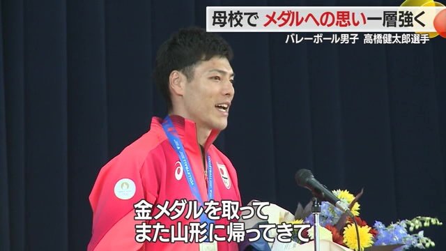 後輩からのエールを受けた高橋選手は「ネーションズリーグの銀メダルを越すいい色・金メダルを取って、また山形に帰ってきて米沢中央の皆さんにいい報告ができるように、精いっぱい努力して最後の調整をしていくので引き続き応援してください」と決意を新たにしていた。