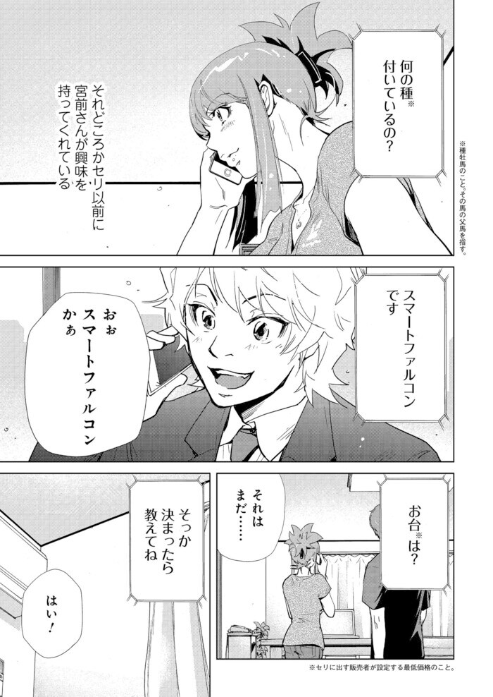 生産牧場につきまとう“セリ”の悩み…売れ残る可能性を残しながらセリに出すか“言い値”で売るか マンガ『会社をやめて馬主やります! アキコノユメヲ』(第20話・後編) 信田朋嗣 栗元健太郎/咲 2024年7月8日 月曜 午前7:01 #1 … #39 #40 #41 … #80 次ページ500万で売ってしまえば売れ残りは無いが…? 1 2 3 4 5 #1 … #39 #40 #41 … #80 【よく一緒に読まれている記事】 【初めから読む】“サラリーマン馬主”も夢じゃない!会社を辞め、「ただいま」と競走馬を生産する実家に戻ってきた娘… 信田朋嗣,栗元健太郎/咲の他の記事 2歳馬の身体にとって実は厳しい調教と遠征…その判断の重さに馬主が耐えるために必要な“声” エンタメ 2024年11月25日 2歳牝馬で全治6ヶ月の怪我…馬主が考える“パンク”した馬の転売・放牧・引退、そして殺処分という4つの選択肢 エンタメ 2024年11月25日 2歳牝馬にとって度重なる遠征は体の負担が大きい…それでも狙いたいグランダム・ジャパンで勝利する価値 エンタメ 2024年11月18日 重賞を勝利した馬が次に狙うレースの意味。2歳牝馬がグランダム・ジャパンを狙って見える景色とは エンタメ 2024年11月18日 一覧ページへ
