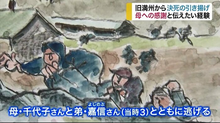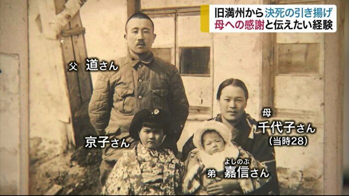 父親とはぐれ、母親の千代子さんは、リュックサックの上に3歳になった嘉信さんを背負い、京子さんの手を引いて逃げた。
