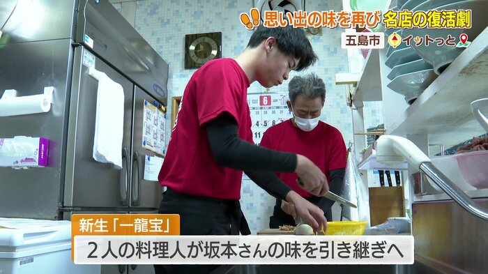 内尾さん率いる新生「一龍宝」では、2人の料理人が坂本さんの味を引き継ぐことになった。地元出身の西村洋二さんは中華料理店で働いていた経験を持ち、即戦力だ。「引き継ぐプレッシャーはもちろんあった。坂本さんの味の特徴ははっきりした味。僕もはっきりしたものを作っていたつもりだが、さらに上だった」と語る。