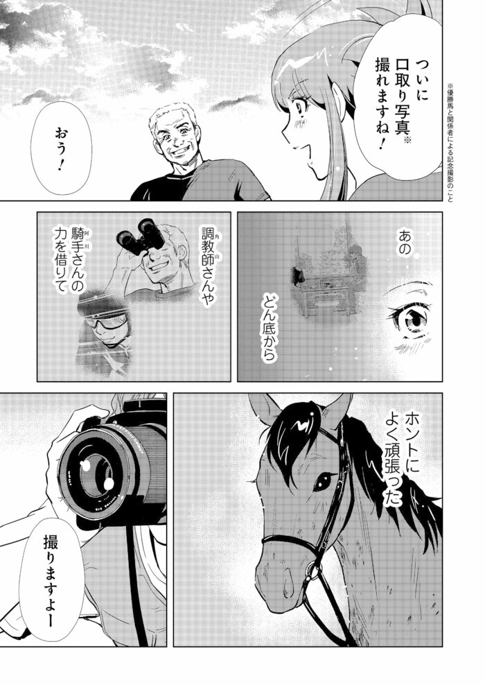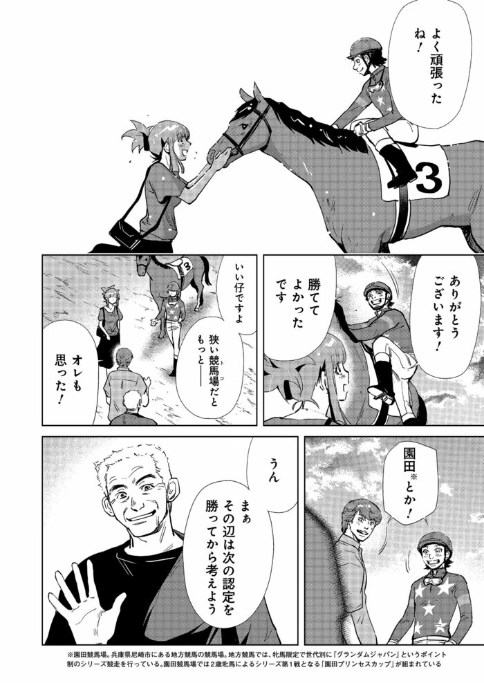 馬主になったとき、絶対に忘れてはいけない“記念馬券”。”応援馬券”だけでなく別に100円だけ買っておく意味 マンガ『会社をやめて馬主やります! アキコノユメヲ』(第24話・後編) 信田朋嗣 栗元健太郎/咲 2024年8月5日 月曜 午前7:01 #1 … #47 #48 #49 … #80 次ページさあ口取り写真だ! 1 2 3 4 5 6 #1 … #47 #48 #49 … #80 【よく一緒に読まれている記事】 【初めから読む】“サラリーマン馬主”も夢じゃない!会社を辞め、「ただいま」と競走馬を生産する実家に戻ってきた娘… 信田朋嗣,栗元健太郎/咲の他の記事 2歳馬の身体にとって実は厳しい調教と遠征…その判断の重さに馬主が耐えるために必要な“声” エンタメ 2024年11月25日 2歳牝馬で全治6ヶ月の怪我…馬主が考える“パンク”した馬の転売・放牧・引退、そして殺処分という4つの選択肢 エンタメ 2024年11月25日 2歳牝馬にとって度重なる遠征は体の負担が大きい…それでも狙いたいグランダム・ジャパンで勝利する価値 エンタメ 2024年11月18日 重賞を勝利した馬が次に狙うレースの意味。2歳牝馬がグランダム・ジャパンを狙って見える景色とは エンタメ 2024年11月18日 一覧ページへ