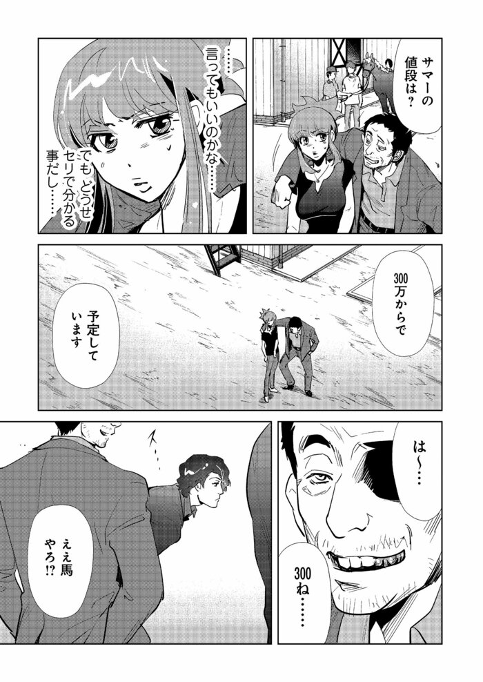 “招かれざる客”が牧場にやってきた…金歯を見せびらかす馬主がセリ前に始める“交渉”とは? マンガ『会社をやめて馬主やります! アキコノユメヲ』(第25話・前編) 信田朋嗣 栗元健太郎/咲 2024年8月12日 月曜 午前7:00 #1 … #48 #49 #50 … #80 次ページばっちり交渉…? 1 2 3 4 5 #1 … #48 #49 #50 … #80 【よく一緒に読まれている記事】 「セリで売れ残ってみい!?大変やで!」生産牧場の痛いところをつく馬主の“交渉”に、毅然と立ち向かえるワケ 信田朋嗣,栗元健太郎/咲の他の記事 2歳馬の身体にとって実は厳しい調教と遠征…その判断の重さに馬主が耐えるために必要な“声” エンタメ 2024年11月25日 2歳牝馬で全治6ヶ月の怪我…馬主が考える“パンク”した馬の転売・放牧・引退、そして殺処分という4つの選択肢 エンタメ 2024年11月25日 2歳牝馬にとって度重なる遠征は体の負担が大きい…それでも狙いたいグランダム・ジャパンで勝利する価値 エンタメ 2024年11月18日 重賞を勝利した馬が次に狙うレースの意味。2歳牝馬がグランダム・ジャパンを狙って見える景色とは エンタメ 2024年11月18日 一覧ページへ