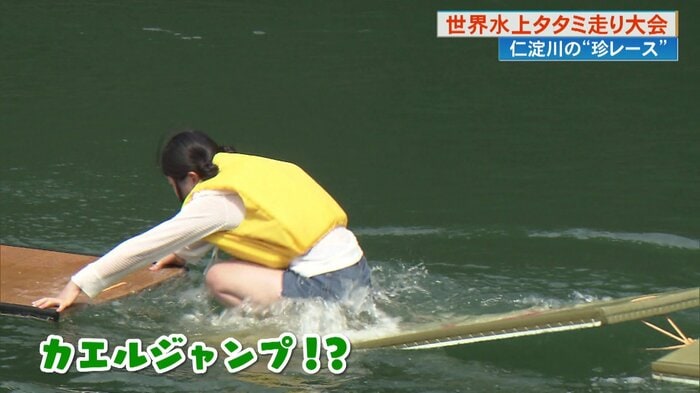 結果、畳2枚目で落ち、川にドボン。この記録は一般男性の部で最下位だったそう。