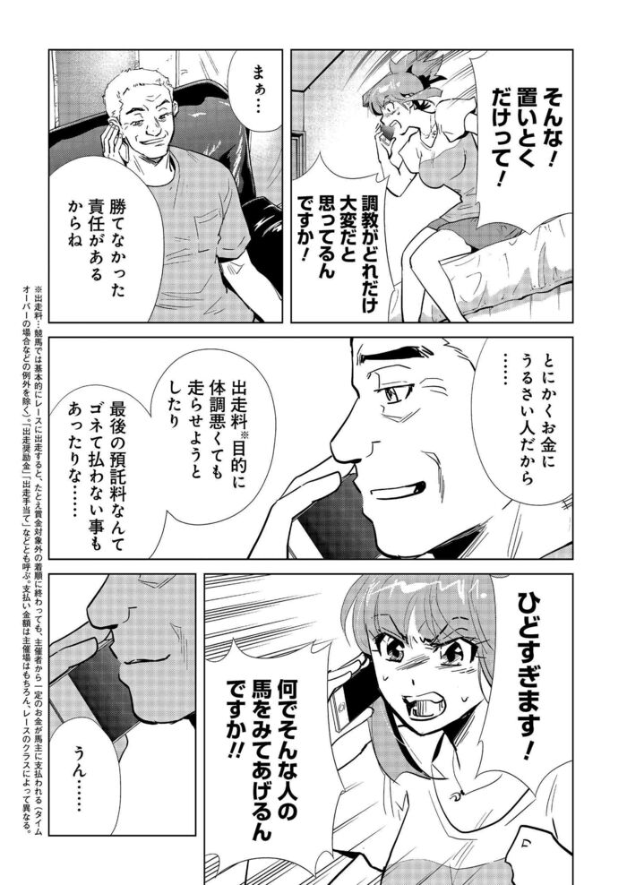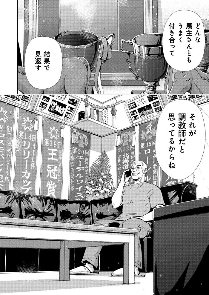 出走料目的で走らせたり、預託料をゴネて払わない…評判が良くない馬主の馬も引き受ける調教師の“プライド” マンガ『会社をやめて馬主やります! アキコノユメヲ』(第26話・前編) 信田朋嗣 栗元健太郎/咲 2024年8月19日 月曜 午前7:00 #1 … #50 #51 #52 … #80 次ページ結果で見返す…それは… 1 2 3 4 5 #1 … #50 #51 #52 … #80 【よく一緒に読まれている記事】 セリで1歳馬の買い手がつかない"主取り”…売れ残る恐怖を知る生産牧場だからこそ感じる恐怖 信田朋嗣,栗元健太郎/咲の他の記事 2歳馬の身体にとって実は厳しい調教と遠征…その判断の重さに馬主が耐えるために必要な“声” エンタメ 2024年11月25日 2歳牝馬で全治6ヶ月の怪我…馬主が考える“パンク”した馬の転売・放牧・引退、そして殺処分という4つの選択肢 エンタメ 2024年11月25日 2歳牝馬にとって度重なる遠征は体の負担が大きい…それでも狙いたいグランダム・ジャパンで勝利する価値 エンタメ 2024年11月18日 重賞を勝利した馬が次に狙うレースの意味。2歳牝馬がグランダム・ジャパンを狙って見える景色とは エンタメ 2024年11月18日 一覧ページへ