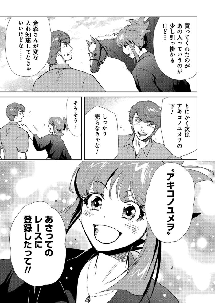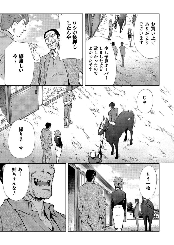 サマーセールで最低落札価格を下回る価格を大声で叫ぶ馬主…1歳馬の夏セリの流れが変わる時 マンガ『会社をやめて馬主やります! アキコノユメヲ』(第27話・後編) 信田朋嗣 栗元健太郎/咲 2024年8月26日 月曜 午前7:01 #1 … #53 #54 #55 … #80 次ページあの馬主の口から出てきた言葉は…? 1 2 3 4 5 #1 … #53 #54 #55 … #80 【よく一緒に読まれている記事】 【初めから読む】“サラリーマン馬主”も夢じゃない!会社を辞め、「ただいま」と競走馬を生産する実家に戻ってきた娘… 信田朋嗣,栗元健太郎/咲の他の記事 2歳馬の身体にとって実は厳しい調教と遠征…その判断の重さに馬主が耐えるために必要な“声” エンタメ 2024年11月25日 2歳牝馬で全治6ヶ月の怪我…馬主が考える“パンク”した馬の転売・放牧・引退、そして殺処分という4つの選択肢 エンタメ 2024年11月25日 2歳牝馬にとって度重なる遠征は体の負担が大きい…それでも狙いたいグランダム・ジャパンで勝利する価値 エンタメ 2024年11月18日 重賞を勝利した馬が次に狙うレースの意味。2歳牝馬がグランダム・ジャパンを狙って見える景色とは エンタメ 2024年11月18日 一覧ページへ